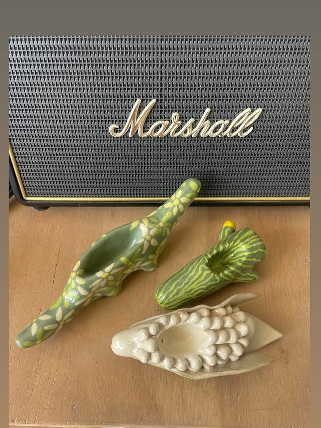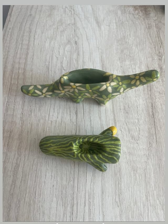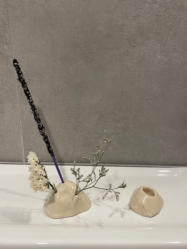 Otras piecitas que hice para el baño, porque nunca es mucho glamour. El de la derecha es un porta vela y el de la izquierda tiene tres huequitos para poner lo que quieras para decorar. Tienen un efecto semi marmolado.