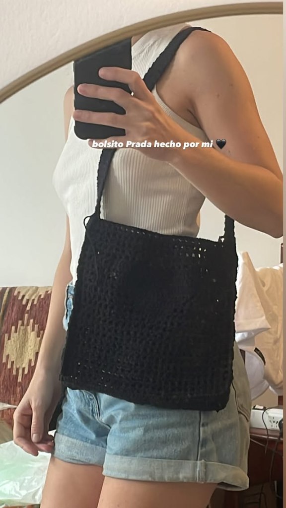 No se ve muy bien en la foto 4k que subí pero en la parte superior tiene crocheteado el típico triangulito de la marca Prada. Lo amo lo uso mucho, sobretodo porque las tiras son resistentes y no esas que se te deforman al toque.