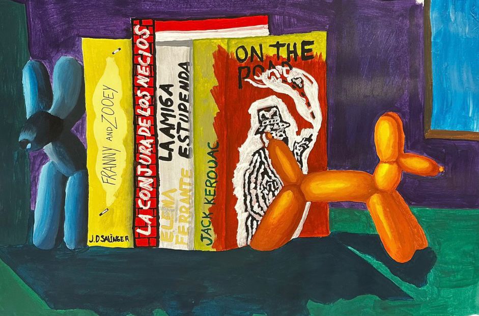 Voy a empezar por los libros que están en ese cuadro que pinté.